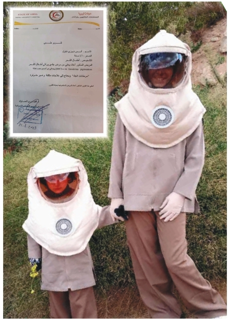 “البدلة الواقية” بخمسة عشر ألف دينار (1,500 دولار)، صالحة ل25 غسلة فقط، إضافة إلى أقنعة ونظارات خاصة وكريمات واقية. رغم تعاون المدرسة-بتوفير قاعة مظلمة لأداء الامتحانات-لا تزال التكاليف الباهظة