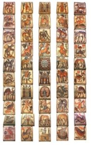 تتألف هذه الأرضية الفسيفسائية من خمسين لوحة في عشرة صفوف في كل صف خمس لوحات مرتبة كما هو في الشكل المرفق .