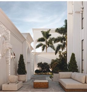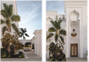 جدران‭ ‬بيضاء‭ ‬تلامس‭ ‬السماء،‭ ‬أقواس‭ ‬بلمسة‭ ‬أندلسية،‭ ‬ونقوش‭ ‬متقنة‭ ‬تُبرز‭ ‬براعة‭ ‬التصميم‭. ‬كل‭ ‬زاوية‭ ‬تحمل‭ ‬توقيعًا‭ ‬يوازن‭ ‬بين‭ ‬الصرامة‭ ‬المعمارية‭ ‬ورهافة‭ ‬الإحساس‭ ‬الأنثوي‭.‬