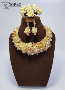 طاقم‭ ‬متكامل‭ ‬من‭ ‬اللؤلؤ‭ ‬مع‭ ‬الكوارتز‭  ‬و‭ ‬الجميل‭ ‬ألوانه‭ ‬المُميزة‭ ‬وتشكيلته‭ ‬الفريدة‭ ‬