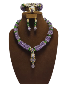 ‭ ‬طقم‭ ‬بجمال‭ ‬و‭ ‬أناقة‭ ‬وتميز‭ ‬اللون‭ ‬الموف‭ ‬يحمل‭ ‬تفاصيل‭ ‬خاصة‭ . ‬طقم‭ ‬كامل‭ ‬عقد‭ ‬وأقراط‭ ‬مع‭  ‬اسوارة‭ ‬بالإضافة‭ ‬إلى‭  ‬خاتم‭ ‬فريد‭ ‬يقال‭ ‬إن‭ ‬له‭ ‬فوائد‭ ‬منها‭  ‬فوائد‭ ‬حجر‭ ‬الأميثيست‭ ‬ترفع‭ ‬مستوى‭ ‬الحماية‭ ‬لديك‭. ‬تساعد‭ ‬على‭ ‬التأمل‭ ‬والتوازن‭ ‬والسلام‭ ‬الداخلي‭ ‬تزيد‭ ‬من‭ ‬ذكائك‭ ‬وتحسن‭ ‬مستوى‭ ‬التركيز‭ ‬والذاكرة‭. ‬تطرد‭ ‬الوساوس‭ ‬وتحسن‭ ‬أحلامك‭ ‬مناسبة‭ ‬لتخفيف‭ ‬الصداع‭ ‬والإجهاد‭.‬